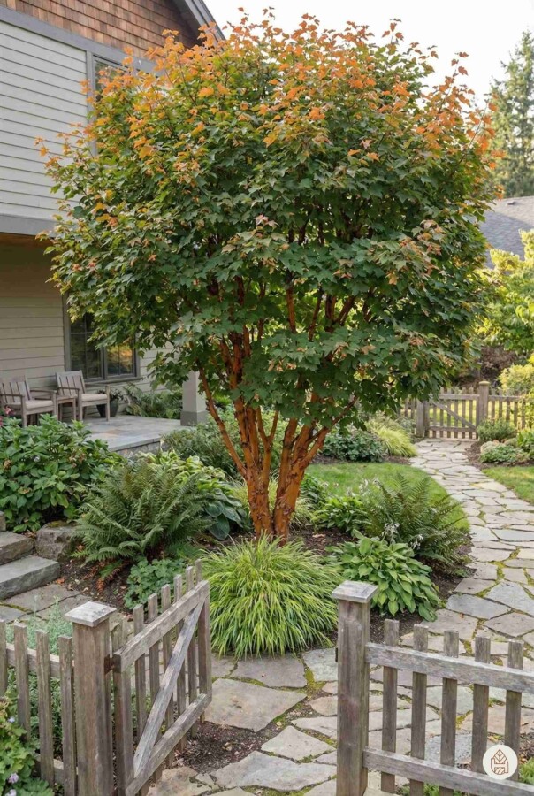 • L'Acer griseum se combine facilement avec d'autres arbustes et plantes vivaces, ajoutant une texture unique à la composition.