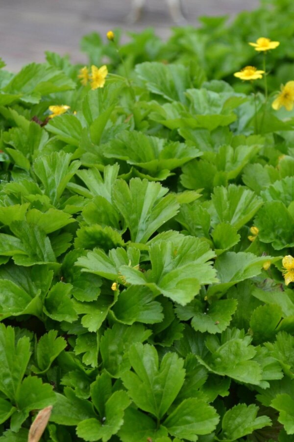 Waldsteinia ternata atteint une hauteur maximale d'environ 10 centimètres.