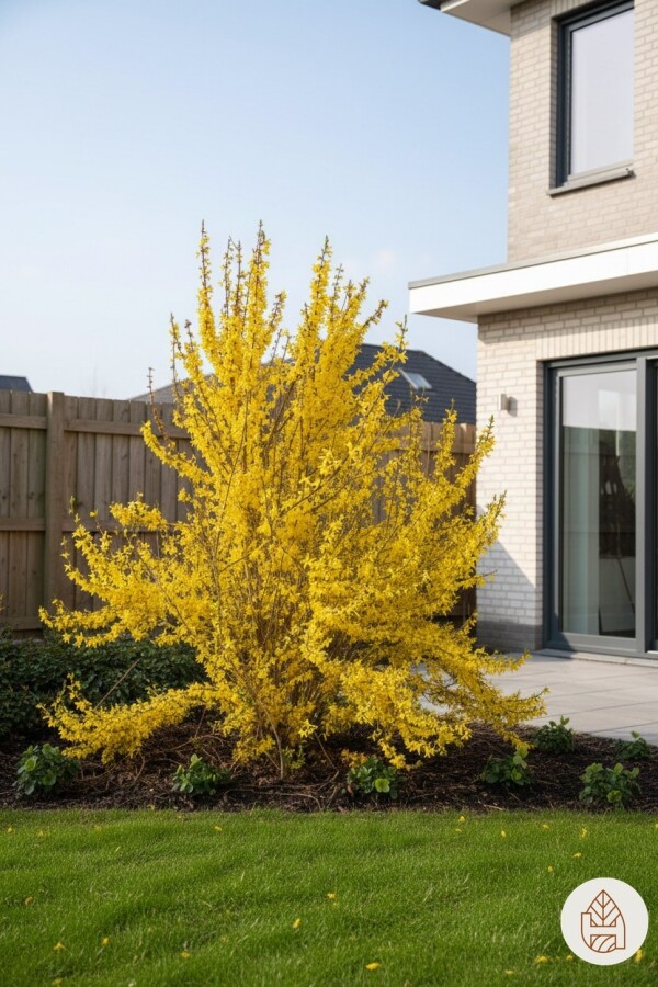 Utilisation du Forsythia intermedia 'Weekend' dans le jardin
