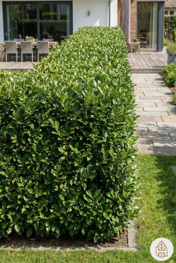 - Croissance très rapide : La haie de rotundifolia pousse entre 40 et 60 cm par an, ce qui permet de créer rapidement une haie haute.