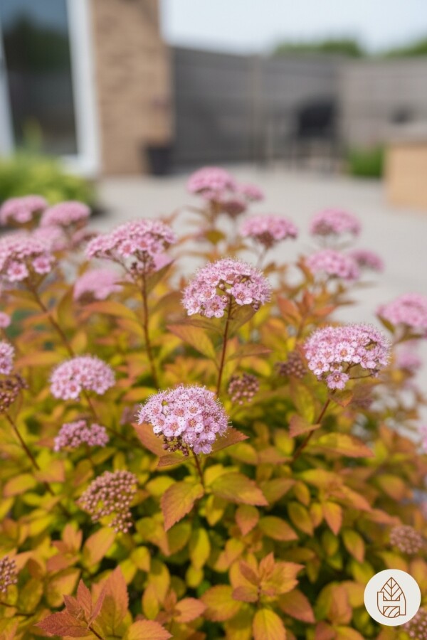 - La Spiraea japonica 'Goldflame' fleurit en juillet et août avec de belles fleurs roses qui attirent les abeilles et les papillons.