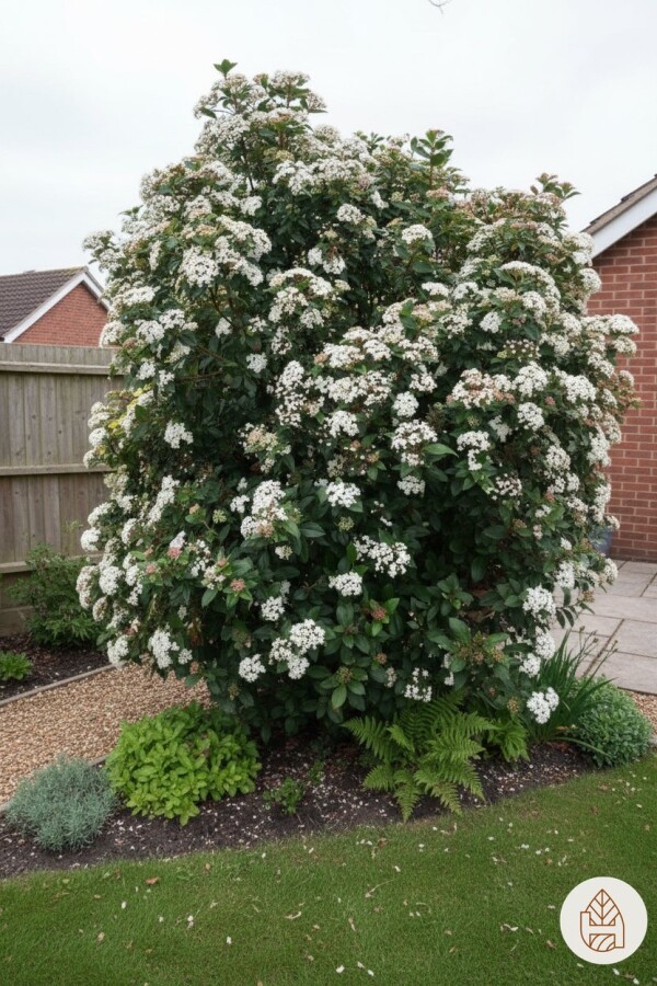 Le Lagerolvon peut atteindre une largeur de 2 à 3 mètres à maturité. Le Viburnum tinus est idéal pour créer des haies denses et persistantes dans le jardin.